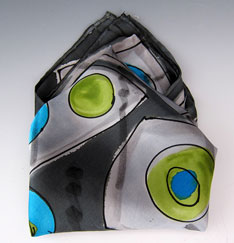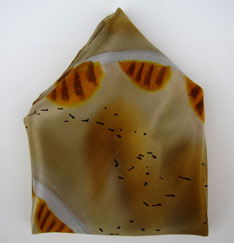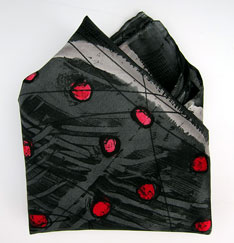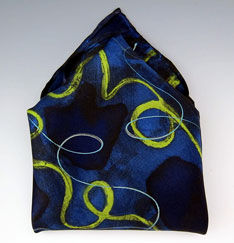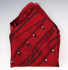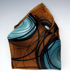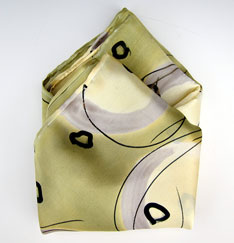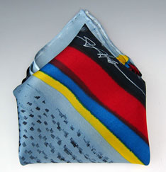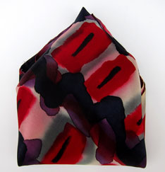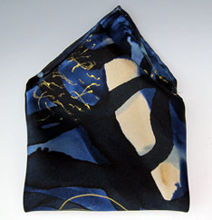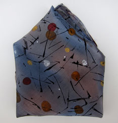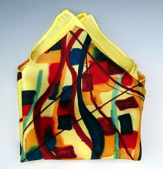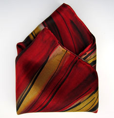 100% silk pocket squares, charmeuse, individually hand-painted and signed by Gabriele, hand-rolled hems, 17 inches by 17 inches.
